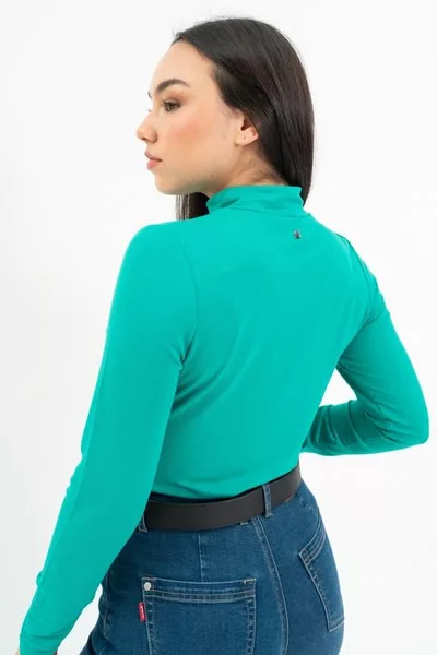 női vékony magas nyakú felső - rugalmas anyagból - szűk fazon - fémcímkével díszítve