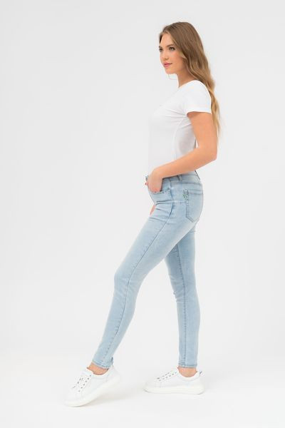 skinny fit női farmernadrág - push-up fazon - magasított derék - fém és műbőr címkével díszítve