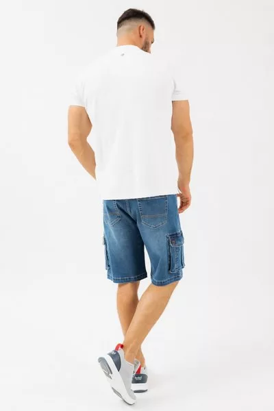 férfi oldalzsebes farmer bermuda nadrágnormál derékmagasság - fém és műbőr címkével díszítve - A termék a divatos, intenzív festés miatt, az első pár mosás alkalmával eresztheti a színét, ezért ajánlott elkülönítve mosni. - A kopás elkerülésének érdekében érdemes kifordítva mosni.<br> <br><p>