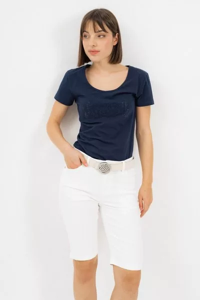 női bermuda nadrág szövött anyagból push-up fazon - normál derékmagasság - fémcímkével díszítve<br> <br> <p>