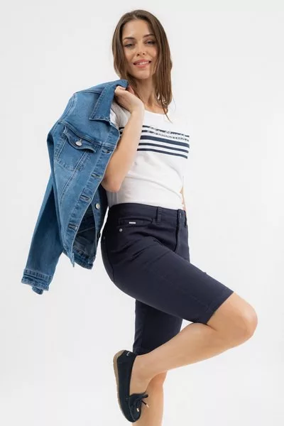 női bermuda nadrág szövött anyagból push-up fazon - normál derékmagasság - fémcímkével díszítve<br> <br> <p>