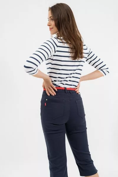 női capri nadrág szövött anyagból push-up fazon - normál derékmagasság - derekában keskeny, fonott övvel - fémcímkével díszítve<br> <br> <p>