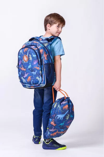 32x44 cm. Egyrekeszes tornazsák. Alapanyaga vízlepergető. Dinoszaurusz mintával.