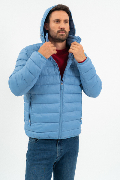 Férfi steppelt vékony dzseki .Kapucni lecipzározható.Belső zsebek.Gumicímkékkel díszítve.