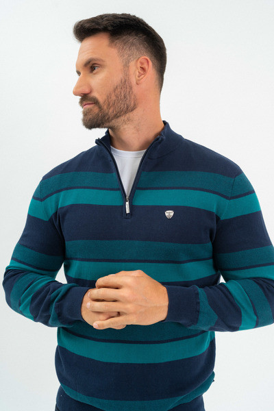 Budmil Kötött pulóver - B20050834-002 férfi Pulóver.s.kék-zöld színű Budmil férfi Pulóver.