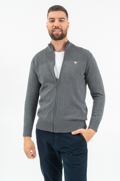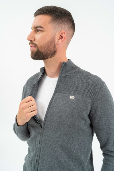 Férfi vékony kötött kardigán. Fémcímkével díszítve.