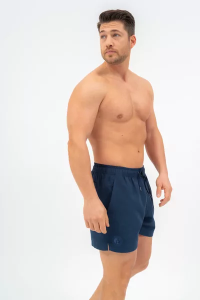 Férfi beach short . Hálós belső nadrággal . Hímzéssel és szövött címkével díszítve. Mindkét oldalán zsebek. Hátul egyik oldalán tépőzáras zseb. A nadrág hátsó részén vízkivezető lyukak.