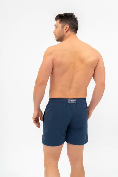 Férfi beach short . Hálós belső nadrággal . Hímzéssel és szövött címkével díszítve. Mindkét oldalán zsebek. Hátul egyik oldalán tépőzáras zseb. A nadrág hátsó részén vízkivezető lyukak.