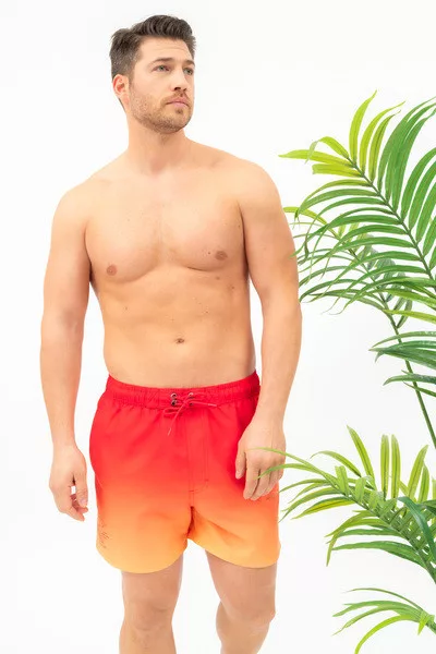 Férfi beach short . Hálós belső nadrággal . Nyomott mintával és/vagy szövött címkével díszítve. Mindkét oldalán zsebek. Hátul egyik oldalán tépőzáras zseb. A nadrág hátsó részén vízkivezető lyukak.