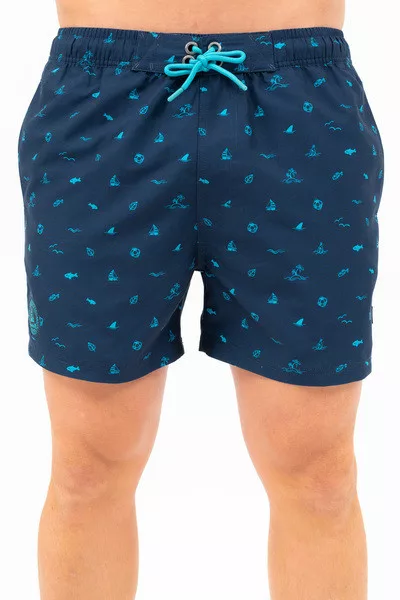 Férfi beach short . Hálós belső nadrággal . Nyomott mintával és/vagy szövött címkével díszítve. Mindkét oldalán zsebek. Hátul egyik oldalán tépőzáras zseb. A nadrág hátsó részén vízkivezető lyukak.