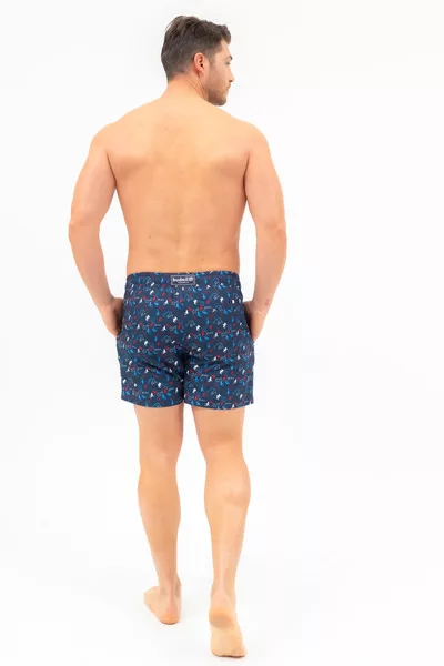 Férfi beach short . Hálós belső nadrággal . Nyomott mintával és/vagy szövött címkével díszítve. Mindkét oldalán zsebek. Hátul egyik oldalán tépőzáras zseb. A nadrág hátsó részén vízkivezető lyukak.