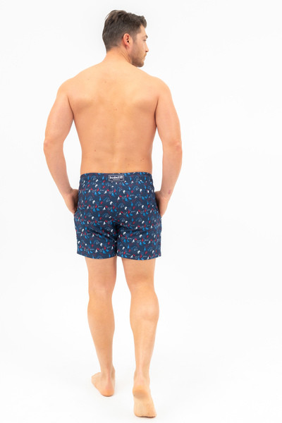 Férfi beach short . Hálós belső nadrággal . Nyomott mintával és/vagy szövött címkével díszítve.