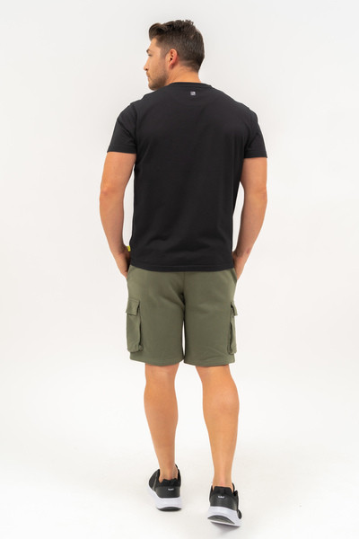 Férfi oldalzsebes short . Alapanyaga belül bolyhozatlan . Szövött címkével díszítve.