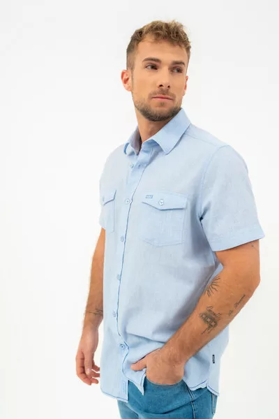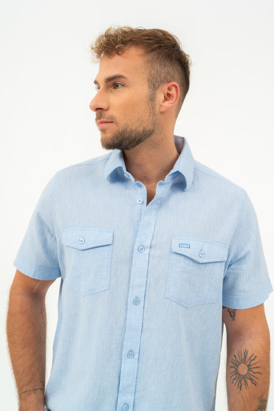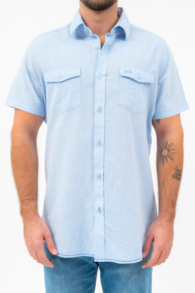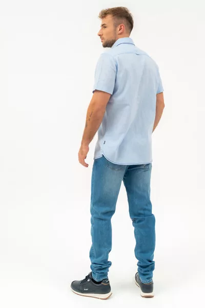 Modern fit rövid ujjú férfi ing . Enyhén szűkített fazon . Hímzéssel és szövött címkével díszítve.