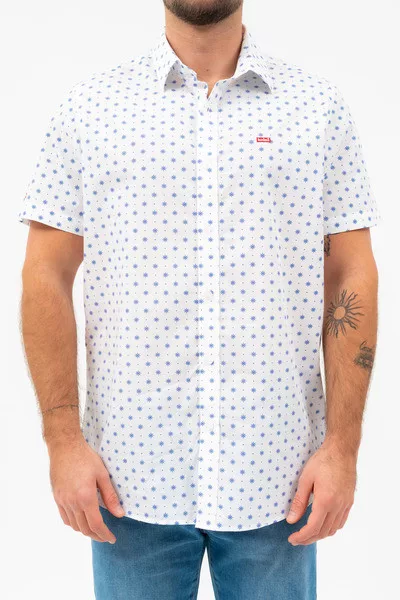 Modern fit rövid ujjú férfi ing . Enyhén szűkített fazon . Hímzéssel és szövött címkével díszítve.