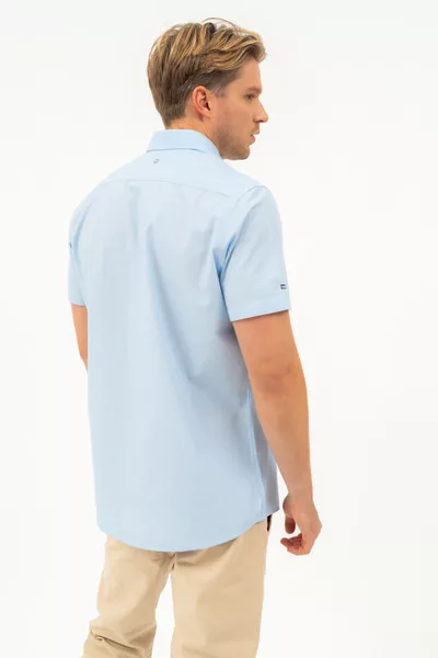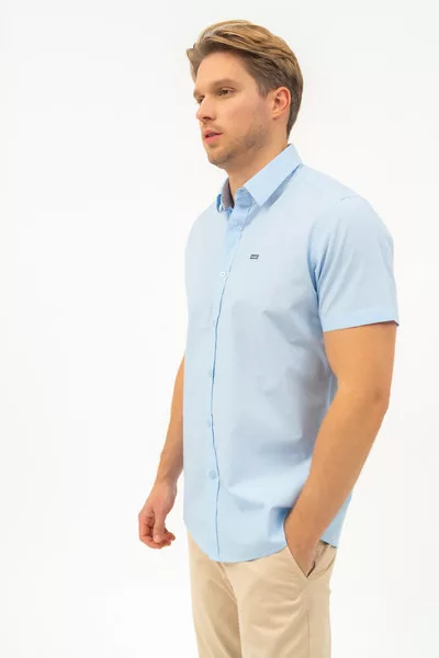 Modern fit rövid ujjú férfi ing . Enyhén szűkített fazon . Hímzéssel és szövött címkével díszítve.