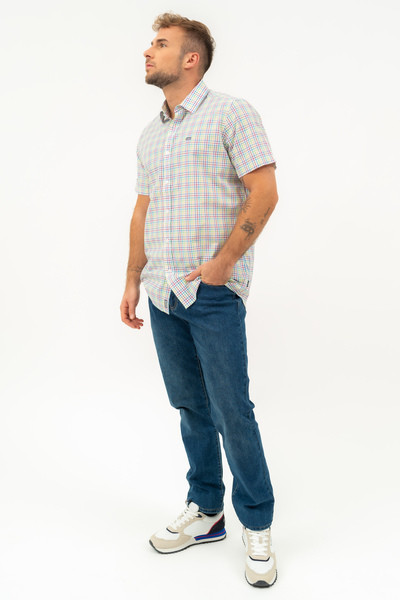 Modern fit rövid ujjú férfi ing . Enyhén szűkített fazon . Hímzéssel és szövött címkével díszítve.