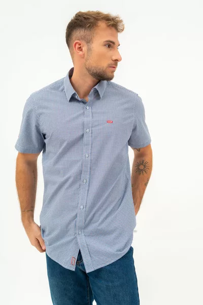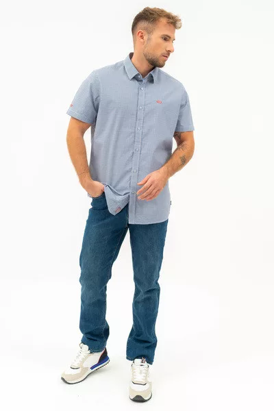 Modern fit rövid ujjú férfi ing . Enyhén szűkített fazon . Hímzéssel és szövött címkével díszítve.