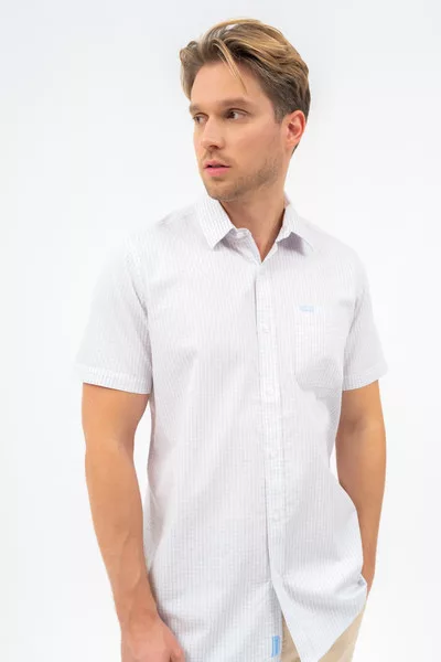 Regular fit rövid ujjú férfi ing . Egyenes szabású fazon . Szövött címkével díszítve.