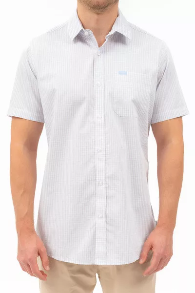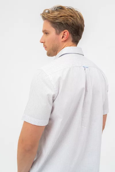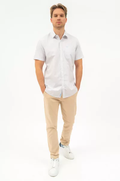 Regular fit rövid ujjú férfi ing . Egyenes szabású fazon . Szövött címkével díszítve.