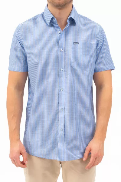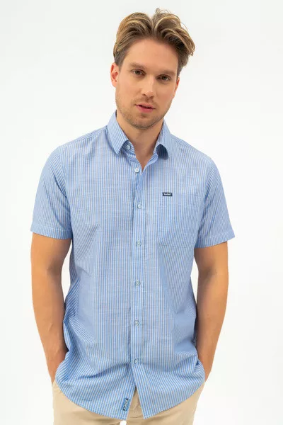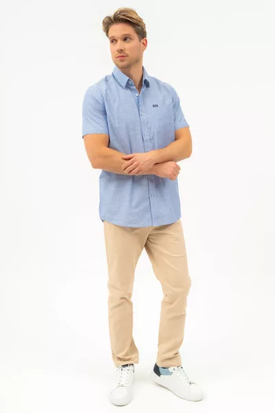 Regular fit rövid ujjú férfi ing . Egyenes szabású fazon . Szövött címkével díszítve.