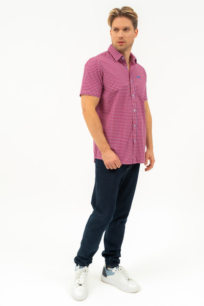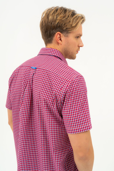 Regular fit rövid ujjú férfi ing . Egyenes szabású fazon . Szövött címkével díszítve.