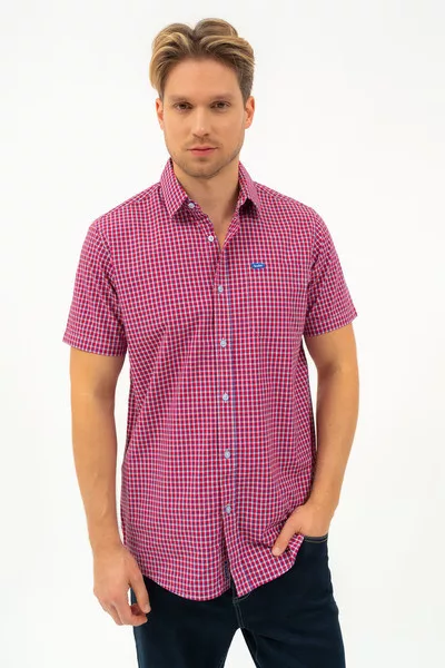 Regular fit rövid ujjú férfi ing . Egyenes szabású fazon . Szövött címkével díszítve.