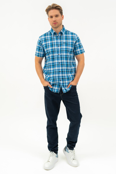 Regular fit rövid ujjú férfi ing . Egyenes szabású fazon . Szövött címkével díszítve.