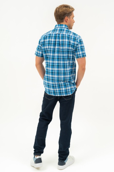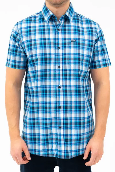 Regular fit rövid ujjú férfi ing . Egyenes szabású fazon . Szövött címkével díszítve.