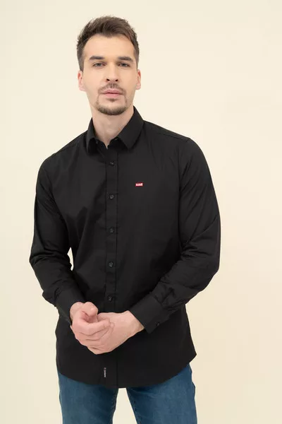 Férfi ing rugalmas anyagból. Slim fit- szűkített fazon. Hímzéssel és szövött címkével díszítve.