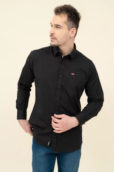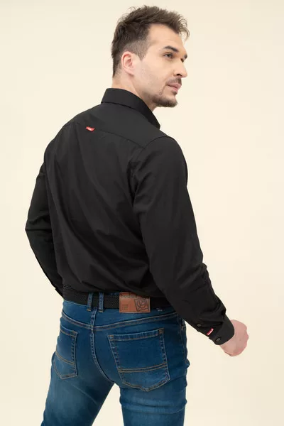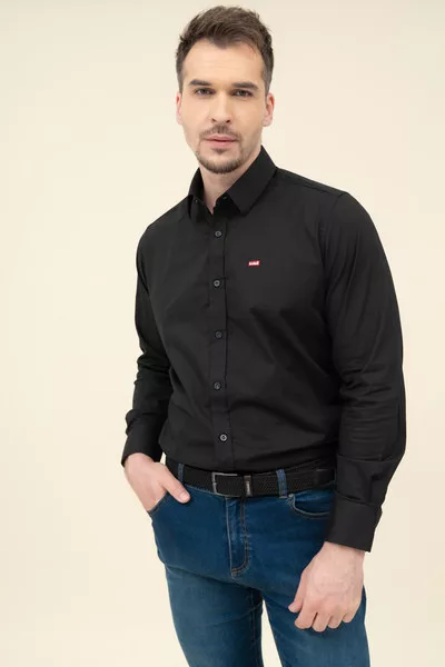 Férfi ing rugalmas anyagból. Slim fit- szűkített fazon. Hímzéssel és szövött címkével díszítve.