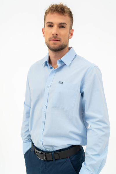 Regular fit hosszú ujjú férfi ing . Egyenes szabású fazon. Szövött címkével díszítve.