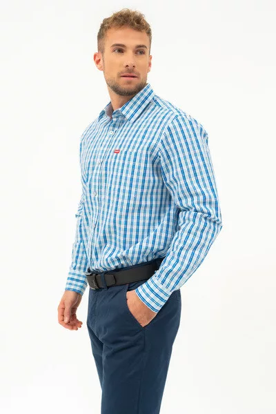 Regular fit hosszú ujjú férfi ing . Egyenes szabású fazon. Szövött címkével díszítve.