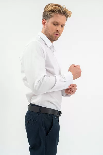 Modern fit hosszú ujjú férfi ing . Enyhén szűkített fazon. Hímzéssel és szövött címkével díszítve.