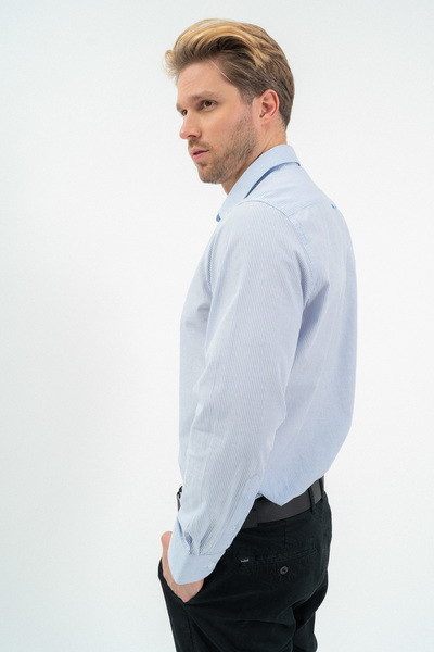 Modern fit hosszú ujjú férfi ing . Enyhén szűkített fazon. Hímzéssel és szövött címkével díszítve.