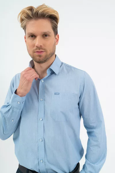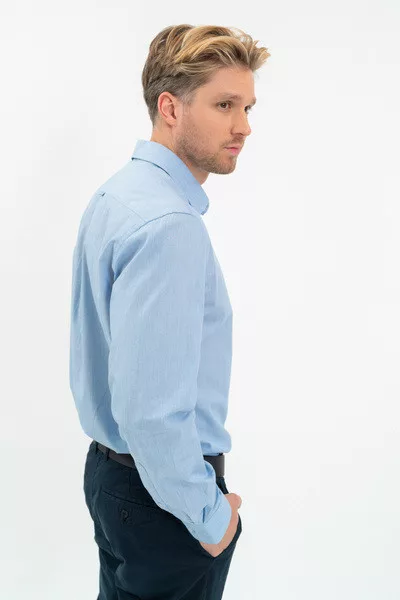 Regular fit hosszú ujjú férfi ing . Egyenes szabású fazon. Szövött címkével díszítve.