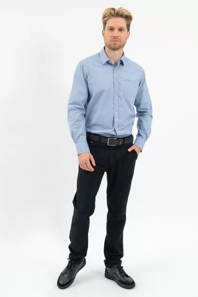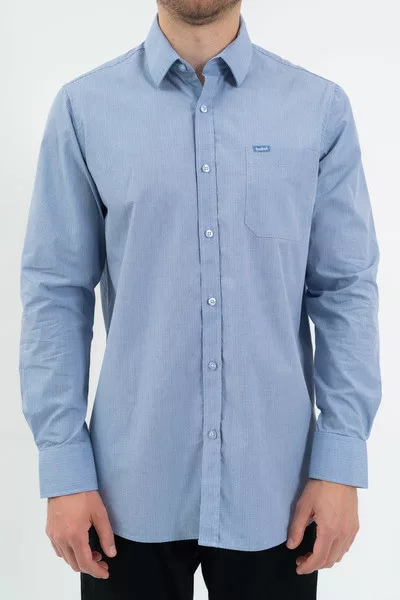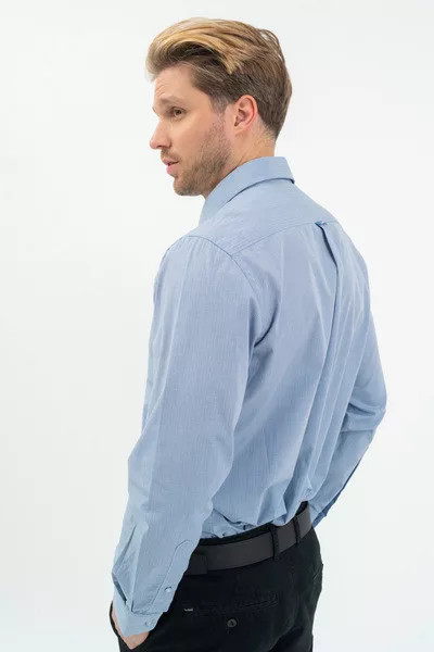 Regular fit hosszú ujjú férfi ing . Egyenes szabású fazon. Szövött címkével díszítve.
