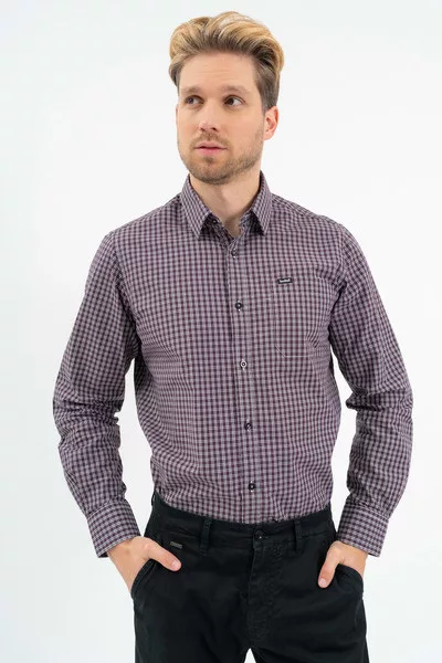 Regular fit hosszú ujjú férfi ing . Egyenes szabású fazon. Szövött címkével díszítve.