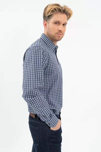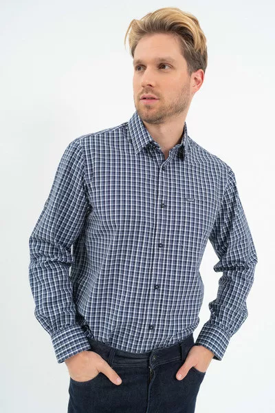Regular fit hosszú ujjú férfi ing . Egyenes szabású fazon. Szövött címkével díszítve.