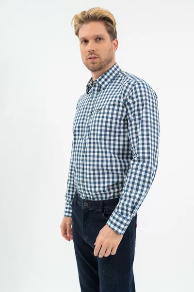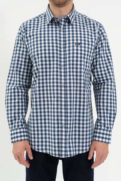Regular fit hosszú ujjú férfi ing . Egyenes szabású fazon. Hímzéssel és szövött címkével díszítve.