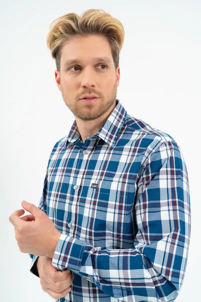 Regular fit hosszú ujjú férfi ing . Egyenes szabású fazon. Hímzéssel és szövött címkével díszítve.