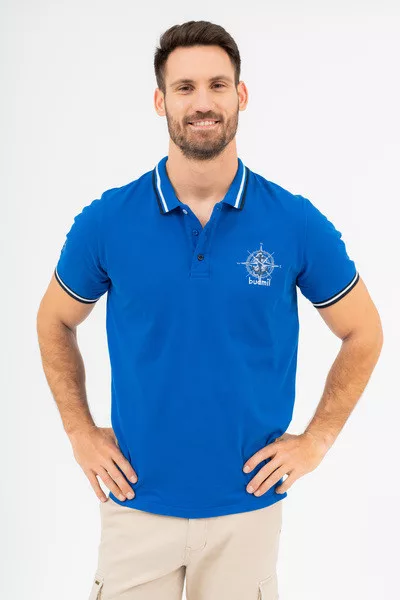 Modern fit férfi galléros póló. Hímzett és nyomott mintával díszített.
