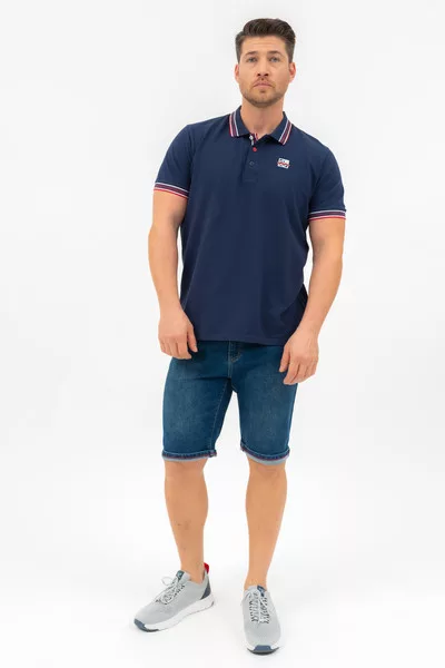 Regular fit férfi galléros póló piké anyagból. Nyomott mintával díszített.