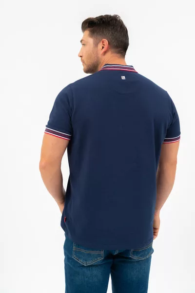 Regular fit férfi galléros póló piké anyagból. Nyomott mintával díszített.