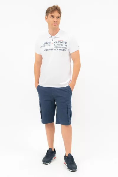 Modern fit férfi galléros póló . Nyomott mintával díszített.