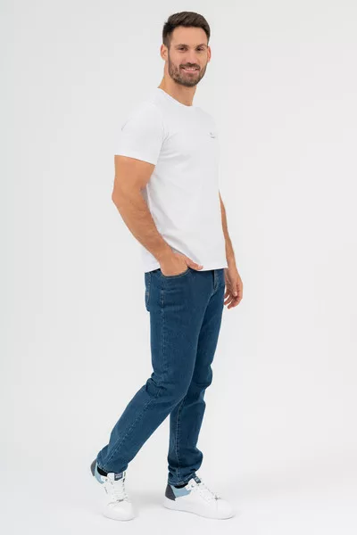 Regular fit férfi póló. Hímzett mintával díszített.