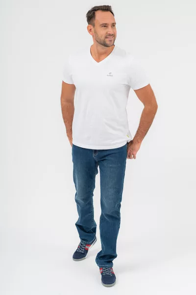 Modern fit férfi póló. Hímzett mintával díszített.