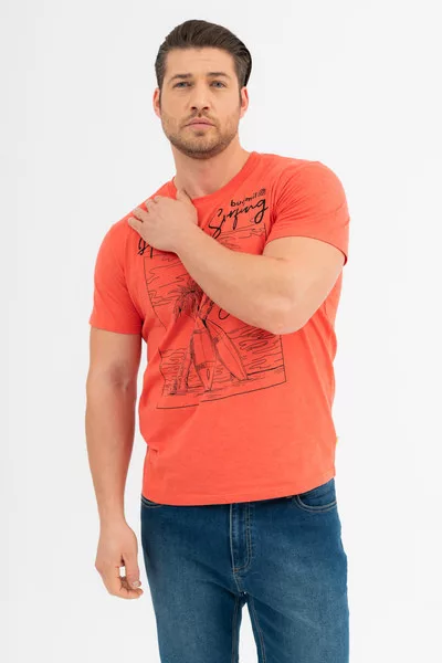 Modern fit férfi póló. Nyomott mintával díszített.