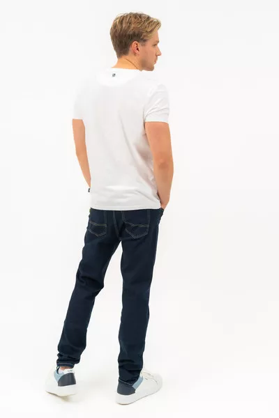 Slim fit férfi póló rugalmas anyagból. Hímzett mintával díszített.