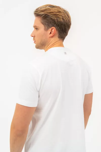 Regular fit férfi póló . Nyomott mintával díszített.